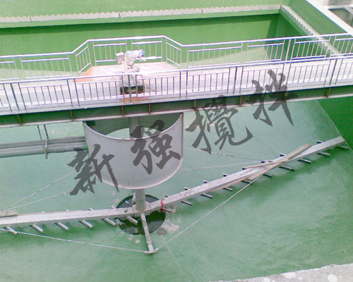 中心傳動刮吸泥機采用中心傳動,污水從進水管流入導流筒擴散后,均勻的向周邊呈輻射狀流出,呈懸浮狀的污泥經沉淀后沉積于池底,驅動裝置帶動中心豎架旋轉,并帶動刮臂及刮泥板轉動,刮泥板將污泥刮集后由吸泥管靠池內靜水壓抽吸至中心泥缸,再通過中心排泥管排出池外,水面上的浮渣通過旋轉撇渣裝置導入排渣斗內排出池外;而上清液則通過三角形出水堰板溢入出水槽內排出。我公司將會針對用戶不同工藝控制條件要求,做相應的配套調整設計,以確保泥漿沉降分離和洗滌效果,減少浪費,節約投資成本。