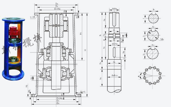 注:圖示所注“h”僅與本樣本BLD、LC-Ⅱ、DC-Ⅱ系列減速機(jī)相配,如選用其他型號(hào)或其他廠家減速機(jī),“h”需另行計(jì)算。增高后的LSJ型機(jī)架其下部空間高度可容納205、206或207型雙端面機(jī)械密封。 |